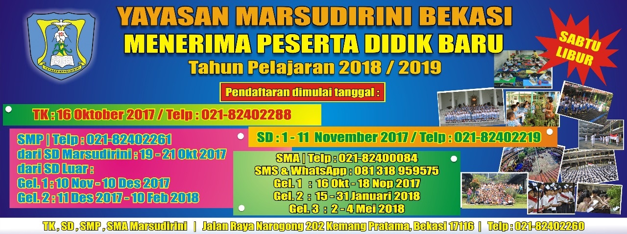 PENERIMAAN PESERTA DIDIK BARU YAYASAN MARSUDIRINI CABANG BEKASI